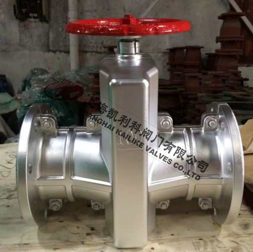 GJ41X不銹鋼管夾閥由上下鑄鐵、鋁合金、不銹鋼閥體,橡膠管套、大小閥桿閘板、上下導(dǎo)柱等零件組成。當(dāng)順轉(zhuǎn)手輪時(shí),使大小閥桿同時(shí)帶動(dòng)上下茬板、壓縮管套、進(jìn)行關(guān)閉,反之即行開啟。這樣,閘板在導(dǎo)柱之間上下往復(fù)完成閥門開閉工作,另因橡膠管套或承力小,所以在開閉時(shí),操作人員旋轉(zhuǎn)輪時(shí)只要感到適量抵觸,均達(dá)到開閉極點(diǎn)。切勿盡力多人補(bǔ)助,禁用其他工具開閉。