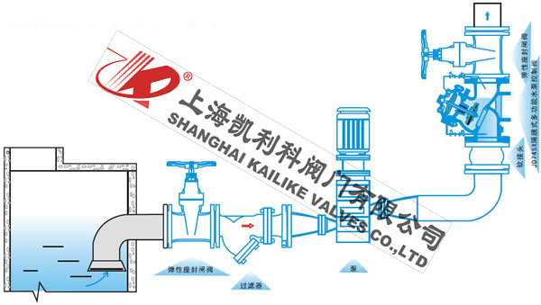 JD745X多功能水泵控制閥由主閥和調(diào)節(jié)閥及接管系統(tǒng)組成,閥體采用直流式閥體,主閥控制室為膜片式或活塞式的雙控制室結(jié)構(gòu),控制室比一般水力控制閥增加了一個(gè),增加了對主閥的控制功能,實(shí)現(xiàn)了對水泵出口的緩慢開啟、全開、緩閉、截止等多功能控制,實(shí)現(xiàn)了一個(gè)閥門、一次調(diào)節(jié)對水泵出口的多功能控制。