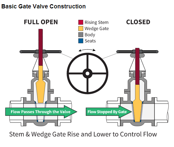 柵極通過移動楔形盤上下障礙物打開和關(guān)閉通過閥的流動路徑。這種線性運動通過桿螺紋上升。轉(zhuǎn)動該螺紋桿需要多次旋轉(zhuǎn)(多圈)從打開至關(guān)閉。轉(zhuǎn)速所需的閥尺寸通常是在3英寸X+2。因此將需要6英寸的閥20的芯柱(6)3[x+2]=20。它們應(yīng)當僅用于開/關(guān)應(yīng)用,節(jié)流了較長時間,會損壞所述障礙物并密封。使用的閘閥節(jié)流還不是非常有效,因為大部分的流量將增長10%。